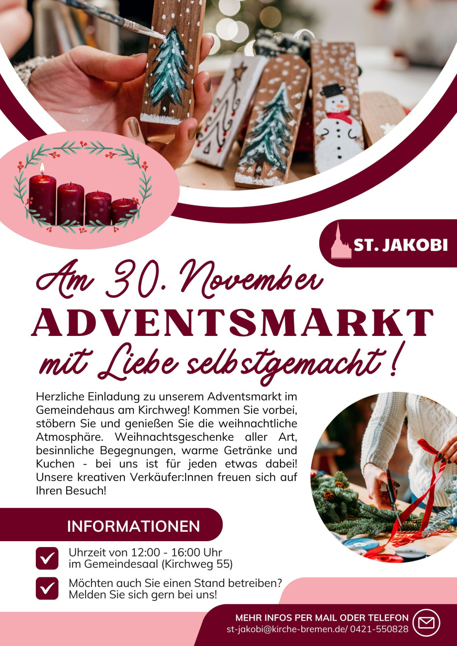 Meldet euch gerne im Gemeindebüro unter st-jakobi@kirche-bremen.de oder bei Evelyn Pusch direkt, wenn Ihr mitmachen wollt! Auch wenn Ihr am 26. Oktober nicht dabei sein könnt.