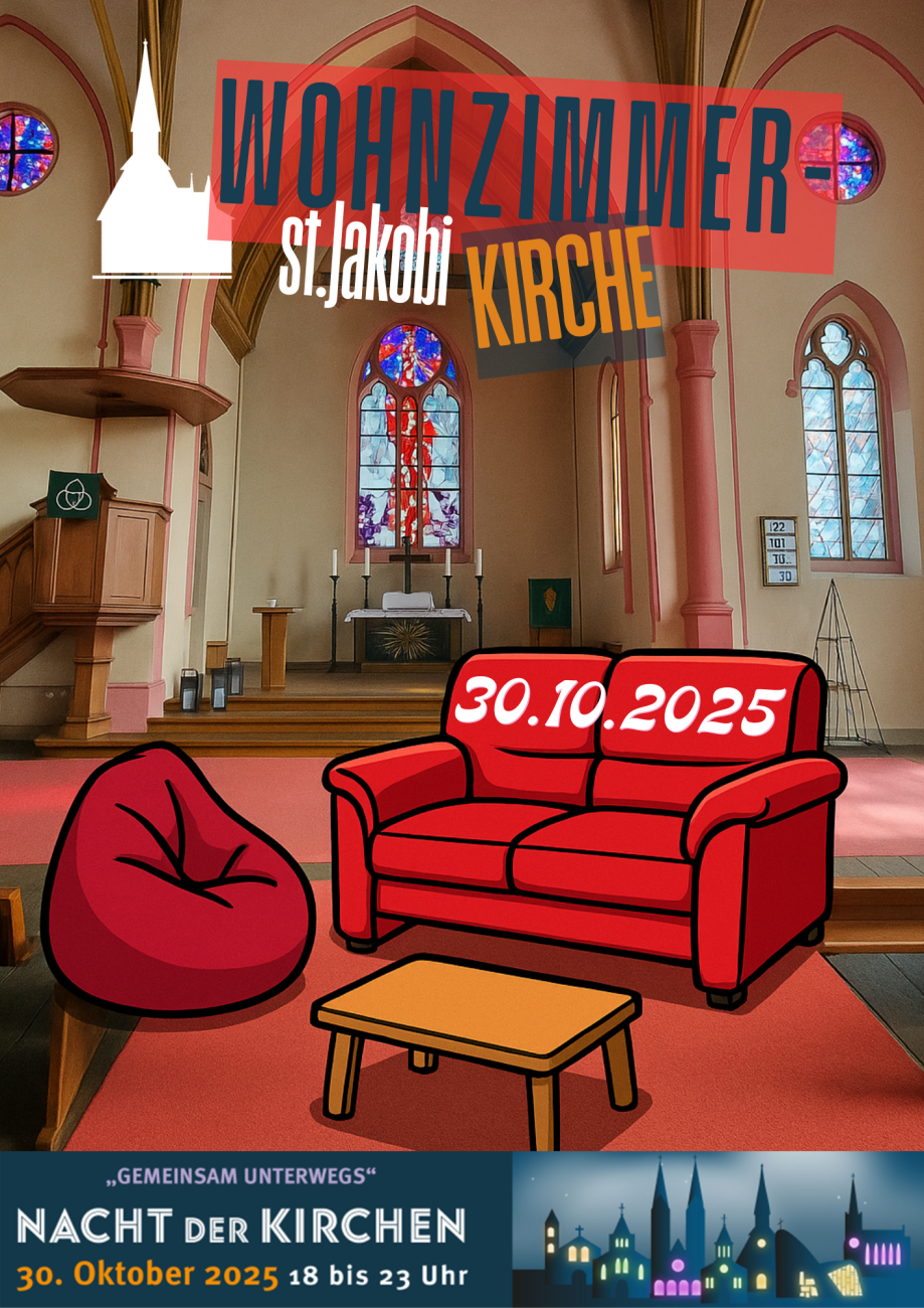 Am 30. Oktober 2025 öffnet die St. Jakobikirche Bremen-Neustadt ihre Türen für ein ganz besonderes Ereignis: die Nacht der Kirchen. Dieses bremenweite Format bringt Menschen jeden Alters zusammen, um Kirche neu und lebendig zu entdecken – in einer Atmosphäre voller Offenheit, Spiritualität und Begegnung. In diesem Jahr laden wir Sie ganz besonders zu unserer Wohnzimmerkirche ein: Ein Ort, der Geborgenheit und Nähe ausstrahlt, wo Sie die Möglichkeit haben, Ihre Liebe segnen zu lassen – unabhängig davon, wie oder wen Sie lieben.